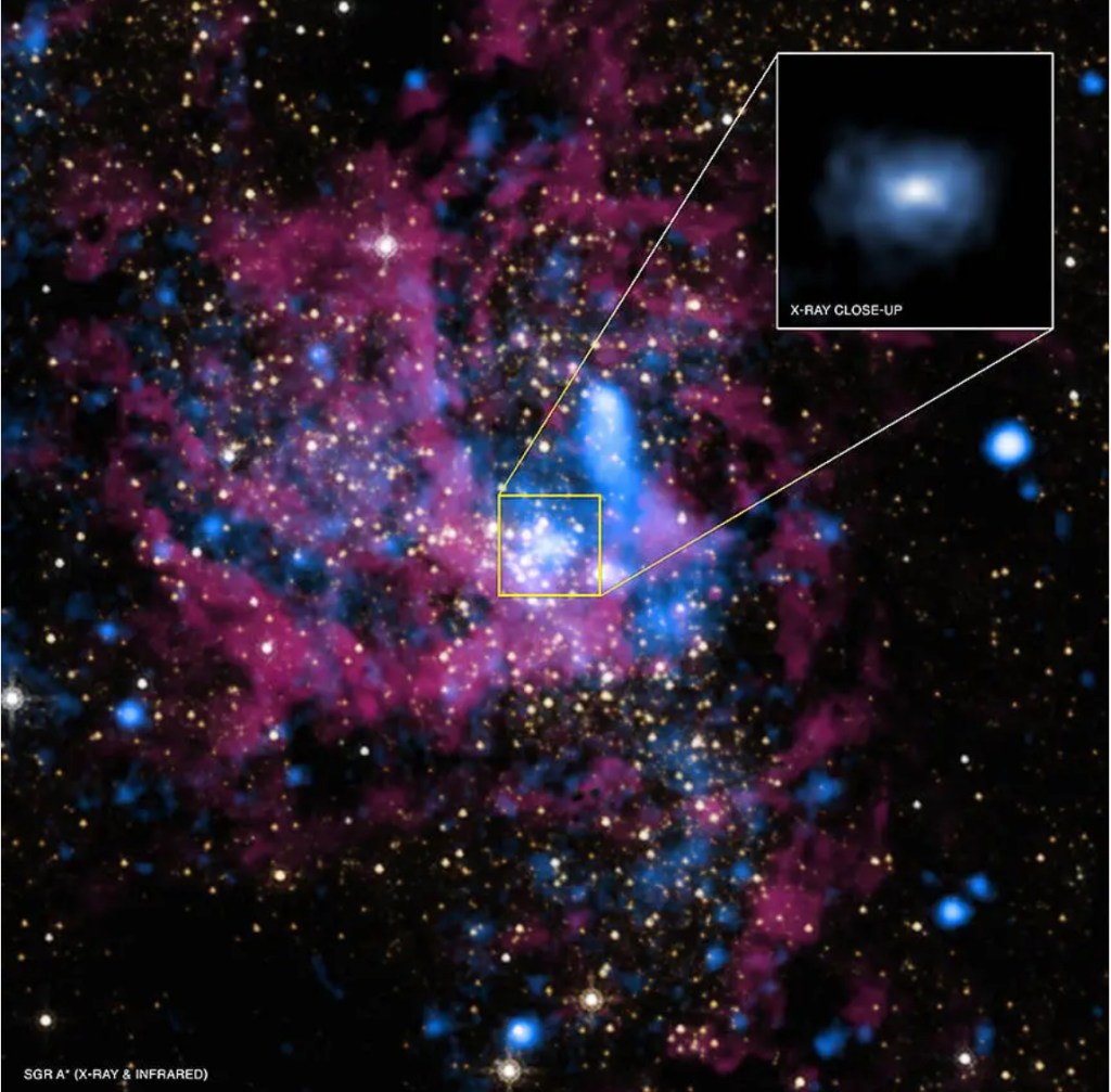 Super massive black hole Sagittarius A* (Sgr A*) is located in the middle of the Milky Way galaxy.